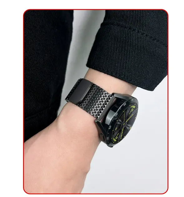 Varno in zanesljivo: S sponko, ki zagotavlja varnost, ta pašček iz nerjavečega jekla zagotavlja, da vaša ura Huawei Watch GT5/4/3/Watch/Pro ostane trdno na mestu. Zanesljiv mehanizem zapiranja preprečuje nenamerno zdrsavanje, kar vam daje mir med vadbo, vožnjo v službo in drugimi aktivnostmi. Pašček je enostaven za namestitev in odstranitev, kar vam omogoča, da brez težav preklapljate svoj slog. Uživajte v samozavesti varnega in elegantnega paščka za uro.