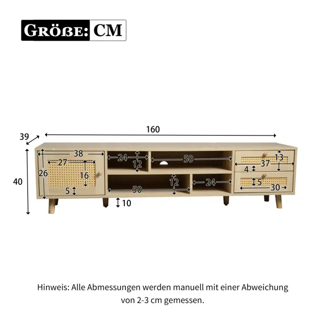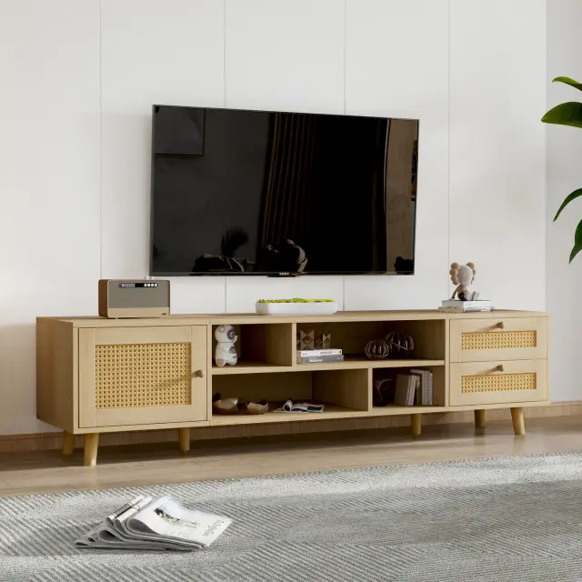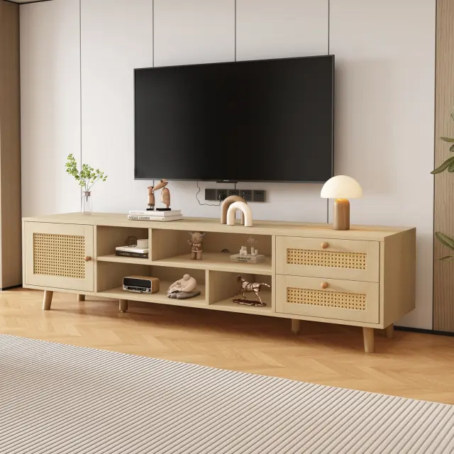 Premium TV omarica iz ratana za 70" TV, 160 cm - upravljanje kabelske televizije, 2 predala, 1 vrata, omarica za dnevno sobo