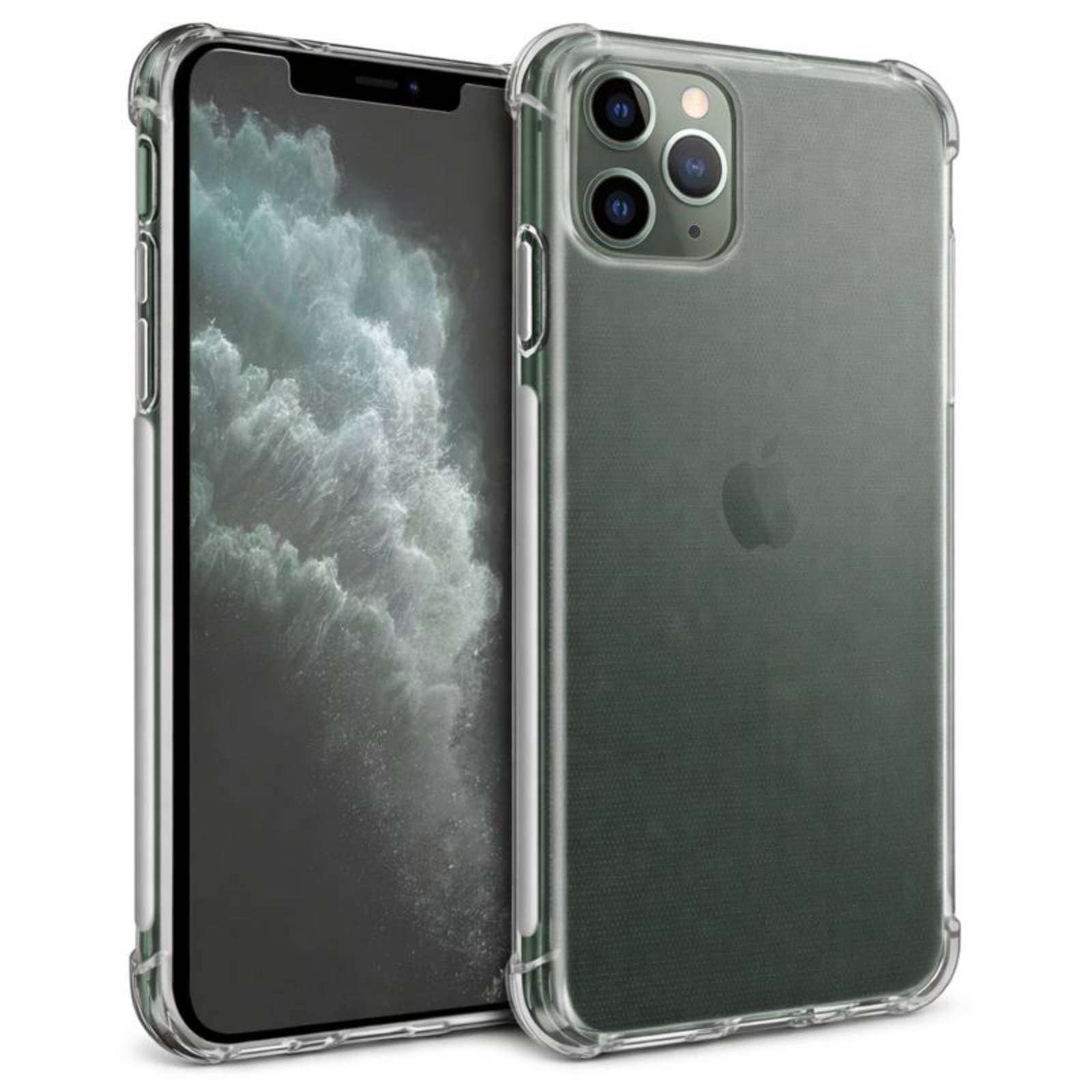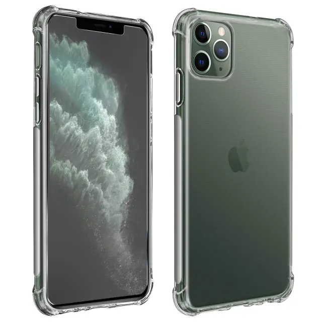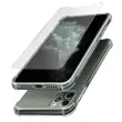Ta zaščitni paket združuje prozorno mehko ohišje in kaljeno steklo za popolno zaščito telefona iPhone 11 Pro.. Silikonska gelska lupina se prilagaja konturam pametnega telefona, hkrati pa absorbira blage udarce in omejuje vsakodnevne praske.. Ojačani vogali lupine absorbirajo del udarca v primeru nenamernega padca na vogale.. Kaljeno steklo 9H učinkovito ščiti zaslon pred praskami, ne da bi vplivalo na občutljivost na dotik ali kakovost zaslona.