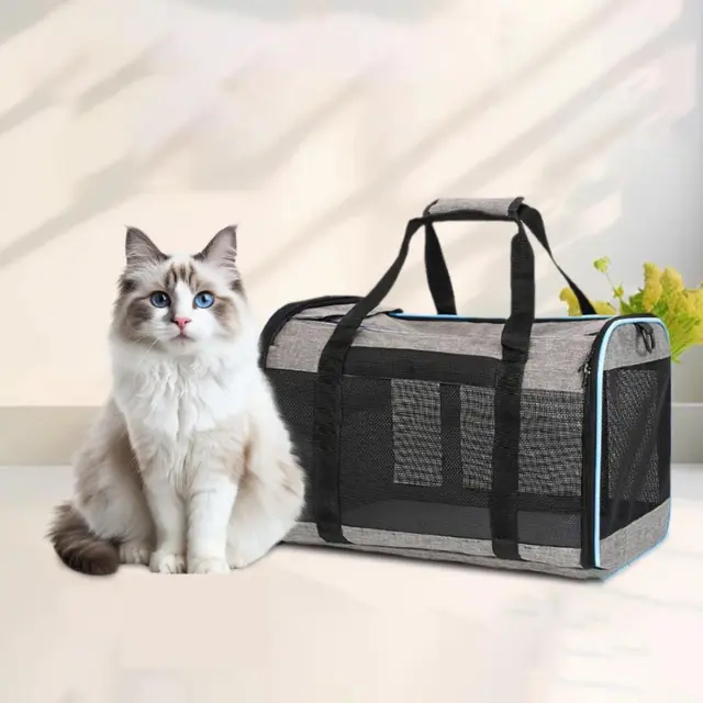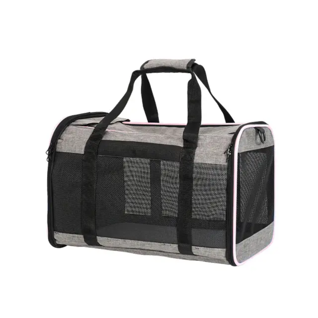 Prenosljiva torba za hišne ljubljenčke: Prostorna, zračna potovalna torba za male pse in mačke Pink+grey