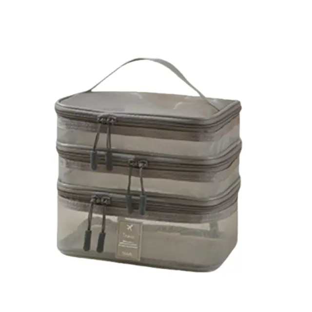 Konstrukcija iz najlonske mreže: Ta torba za shranjevanje kozmetike, izdelana iz visokokakovostne najlonske mreže, ponuja izjemno zračnost in vidljivost. Mrežasti material vam omogoča, da zlahka vidite vsebino vsakega predelka, kar vam prihrani čas in trud pri iskanju določenih predmetov. Robusten najlon zagotavlja, da so vaši predmeti zaščiteni pred razlitji in udarci, zaradi česar je zanesljiva izbira za vsakodnevno uporabo in potovanja.