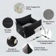Varnost in udobje: Postelja je opremljena z varnostnimi zaponkami, ki jo pritrdijo na avtomobilski sedež, kar preprečuje premikanje med vožnjo. Mehka notranjost zagotavlja udobno ležišče za vašega psa, medtem ko ga dvignjene stranice ščitijo pred padci in udarci. Vakuumsko pakiranje zagotavlja, da postelja prispe v popolnem stanju in jo je enostavno namestiti.