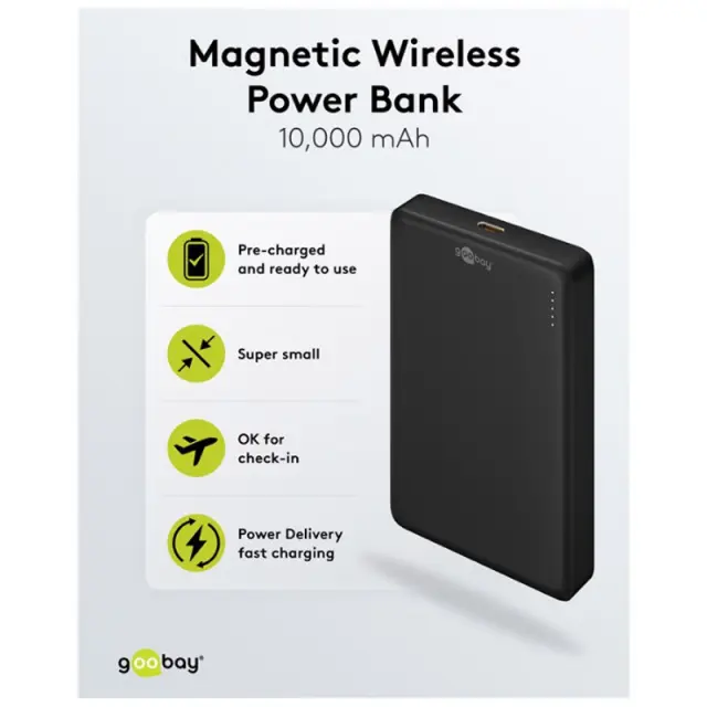 Prenosna baterija GOOBAY PB 10000mAH BLACK MAGNETIC WIRELESS USB-C