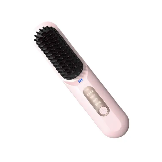Prenosna Brezžična Krtača za Ravnanje Las: Brezžično Oblikovanje za Dom in Potovanja Pink