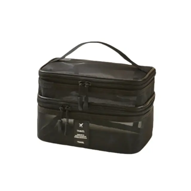 Prenosna dvoslojna kozmetična torbica - nepogrešljiva na potovanjih Black