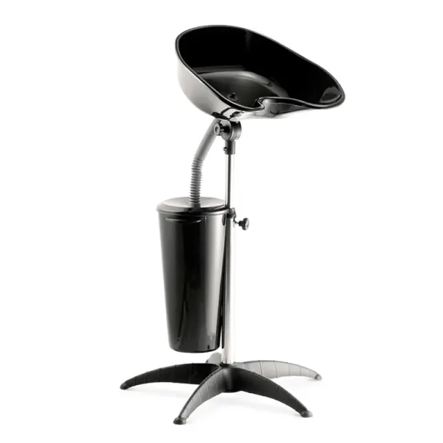 Podložka s plitvo posodo je izdelana iz visokokakovostne plastike, ki jo je enostavno oprati od ostankov barve in las. Poleg tega ima posoda podložke priročno nastavitev kota naklona z vijakom in drenažno luknjo s cevjo za odvajanje vode neposredno v rezervoar, nameščen na nastavljivem stojalu. Prostornina rezervoarja za avtopralnico je 10 litrov.