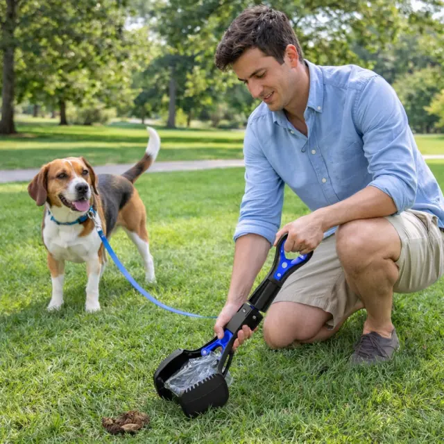 Ta pripomoček za pobiranje pasjih odpadkov je izdelan iz trpežnih materialov v klasični črni in modri barvi in je namenjen vsakodnevni uporabi. Lahka, a trpežna zasnova je idealna za lastnike hišnih ljubljenčkov vseh velikosti in pasem.