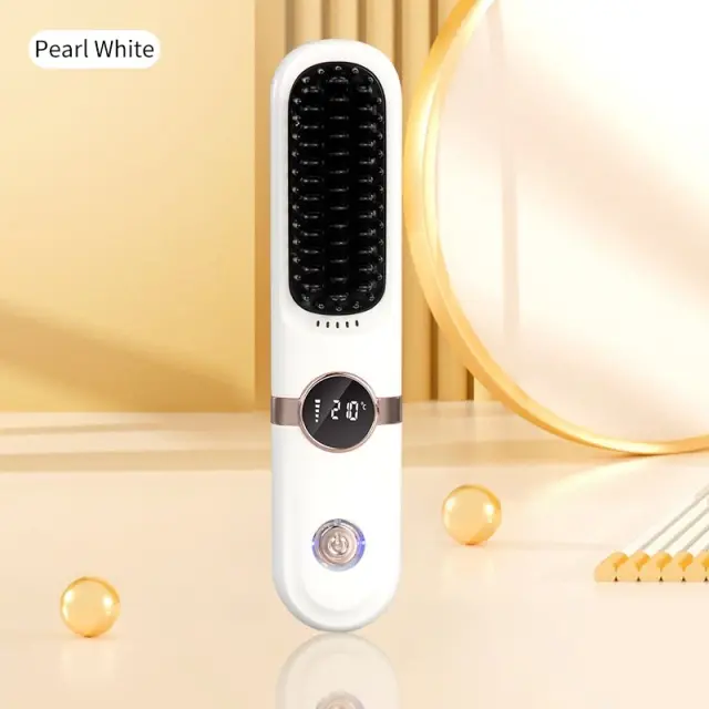Prenosna Mini Brezžična Krtača za Ravnanje Las - Keramična, 3D Proti Opeklinam White