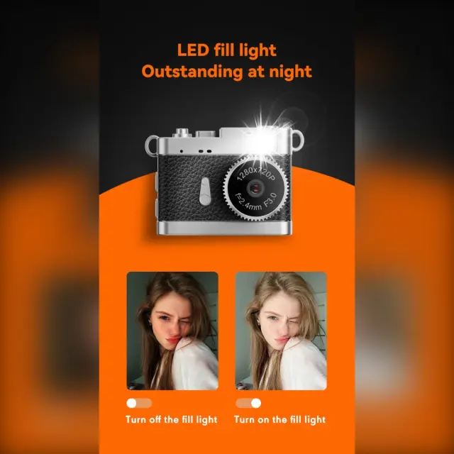 Prenosna Mini Vlog Kamera: 1080P HD Video, 0.96" IPS Zaslon, LED Osvetlitev Black