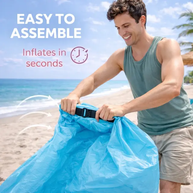 Napolnite ga v nekaj minutah s črpalko ali z zrakom, nato pa preprosto zaprite ventile in uživajte v takojšnjem udobju sedenja. Zaradi lahke zasnove je idealni spremljevalec na potovanjih, piknikih, festivalih ali druženjih na prostem.