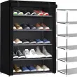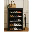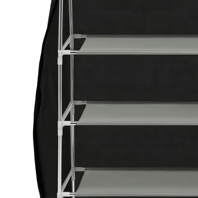 Ta omarica za čevlje iz blaga je lahka in praktična organizatorka, idealna za garderobno sobo, hodnik ali majhen prostor. Opremljena je z več trdnimi policami in omogoča organizirano shranjevanje več parov čevljev. Tkaninski okvir s pokrovom, ki ga je mogoče zakleniti, ščiti čevlje pred prahom in povečuje estetski videz notranjosti.