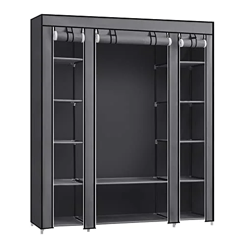 Prenosna omara, zložljiva omara, organizator za shranjevanje oblačil z obešalno palico, police, prevleka iz blaga, za spalnico, garderobo, 150 x 45 x