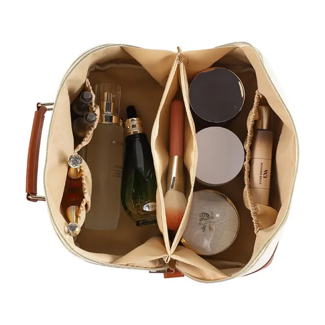 Velika prostornina: Prosimo, upoštevajte: to niso originalni deli. Ta potovalni organizator za ličila je zasnovan s prostorno notranjostjo in ponuja dovolj prostora za vse vaše kozmetične potrebščine. Velika prostornina vam omogoča, da lepo shranite čopiče za ličenje, izdelke za nego kože, toaletne pripomočke in še več. Več predelkov in žepov pomaga ohranjati vse organizirano in lahko dostopno. Ne glede na to, ali se pakirate za vikend oddih ali dolge počitnice, ta torba zagotavlja dovolj prostora za vse vaše lepotne potrebe.