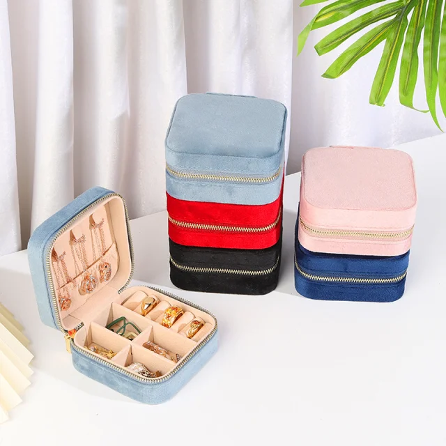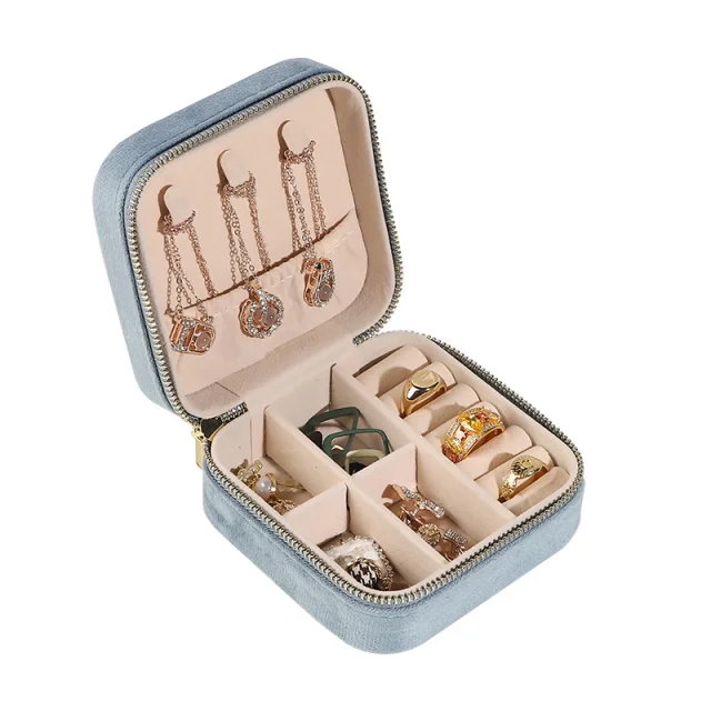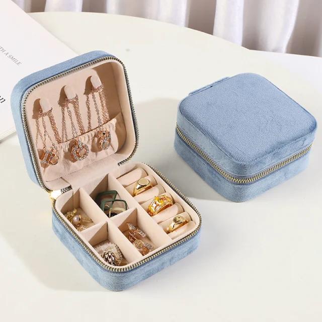 Prenosna škatla za nakit iz potovalnega žameta, organizator za nakit LightBlue