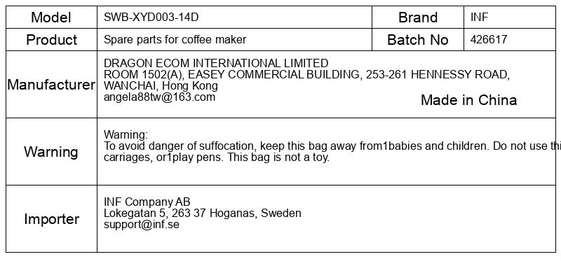 Podatki o proizvajalcu vključujejo informacije (naziv, naslov, državo in elektronski naslov) povezane s proizvajalcem izdelka.