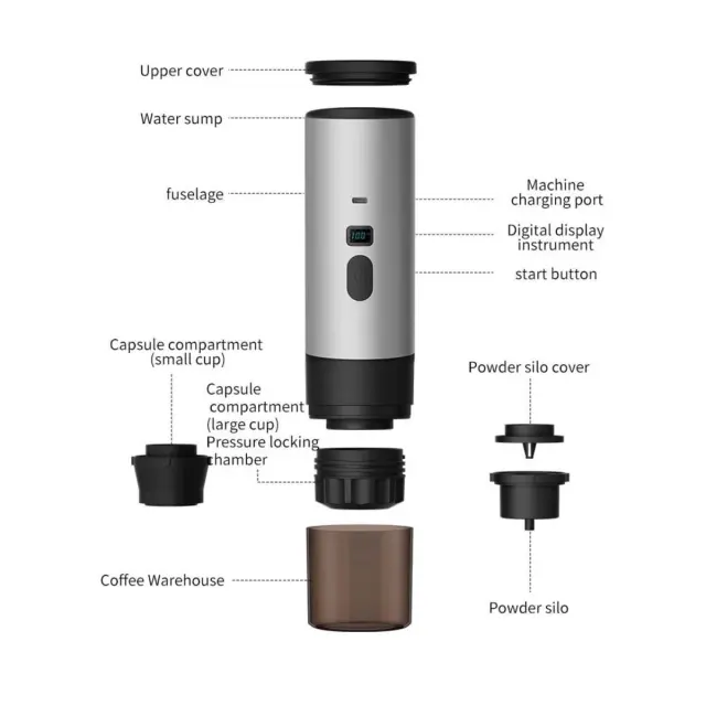 Espresso na poti: Uživajte v sveže pripravljenem espressu kjerkoli s tem prenosnim aparatom za kavo s kapsulami. Njegova kompaktna oblika in priloženo stojalo sta idealna za potovanja, kampiranje ali pisarniško uporabo. Aparat je združljiv s kapsulami Nespresso, kar zagotavlja priročno in dosledno izkušnjo priprave kave. Ne glede na to, ali si želite jutranje poživitve ali popoldanske spodbude, vam ta aparat zagotavlja bogat, okusen espresso na dosegu roke. Funkcija samodejnega segrevanja zagotavlja optimalno temperaturo priprave, medtem ko samodejna ekstrakcija poenostavi postopek. Združljiv z različnimi viri napajanja, je vaš idealen sopotnik za ljubitelje kave.