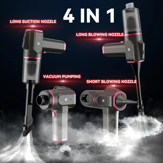 Vsestranski dodatki: Naš avtomobilski sesalnik je opremljen z različnimi nastavki, ki ustrezajo vsem vašim potrebam po čiščenju. Priložena krtača je idealna za oblazinjenje in preproge, medtem ko vam nastavek za reže omogoča dostop do tesnih prostorov in vogalov. Ti vsestranski dodatki zagotavljajo, da lahko učinkovito očistite vsako površino v vašem avtomobilu, od sedežev in armaturnih plošč do zračnikov in talnih oblog. S temi orodji, ki so vam na voljo, vzdrževanje čiste in urejene notranjosti avtomobila še nikoli ni bilo lažje.