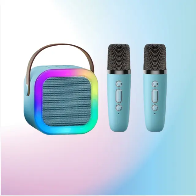 Prenosni Bluetooth Karaoke Zvočnik z Dvojnimi Mikrofoni in Zvočnikom Blue