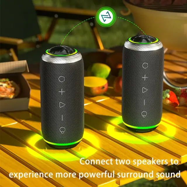 Vrhunska kakovost zvoka: Izkusite kristalno čist zvok z močnimi basi in uravnoteženimi toni, ki ustvarjajo poglobljeno poslušalsko izkušnjo. Prenosni Bluetooth zvočnik je opremljen z napredno tehnologijo obdelave zvoka, ki zagotavlja, da je vsaka nota slišana z izjemno jasnostjo, ne glede na to, ali poslušate v zaprtih prostorih ali na prostem.