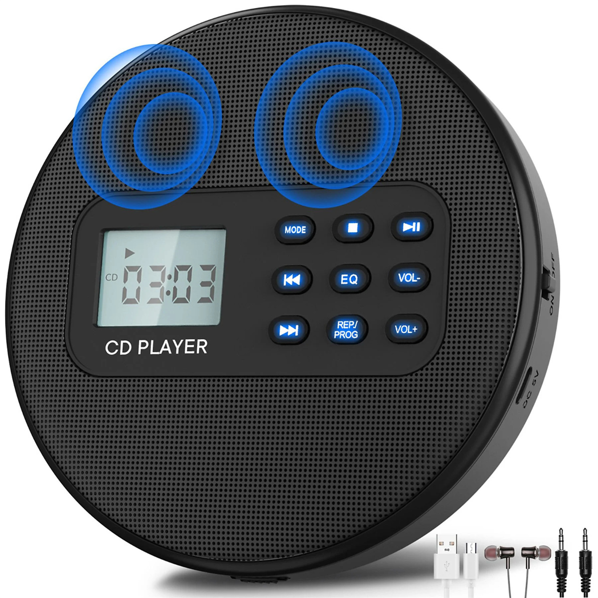 Uživajte v glasbi kjer koli: Ta prenosni predvajalnik CD-jev vam omogoča, da uživate v svoji najljubši glasbi, zvočnih knjigah in MP3-jih doma ali na poti. Ponuja vrhunsko glasbeno izkušnjo z vgrajenimi stereo zvočniki in vsestranskimi možnostmi predvajanja.