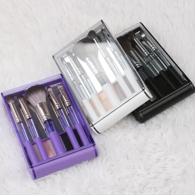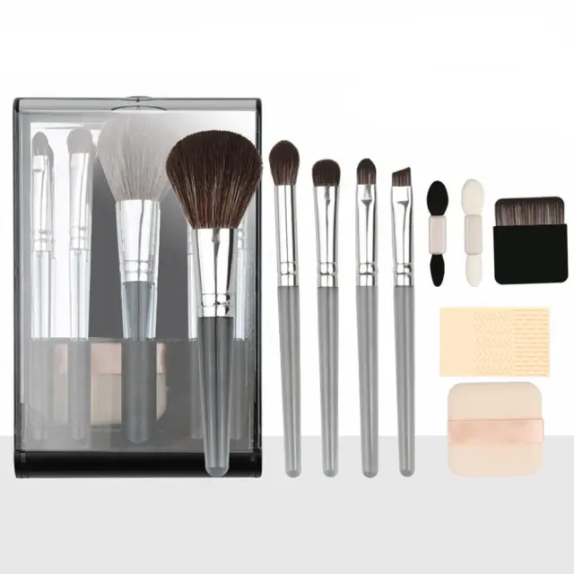Prenosni Črni Set Čopičev za Ličenje - Večnamenski Kozmetični Čopiči z Ogledalom