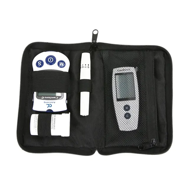 Velik prostor za shranjevanje: ta ovitek za merilnik glukoze v krvi Omron ima dovolj prostora za shranjevanje vašega merilnika glukoze v krvi, testnih lističev, lancet in drugih manjših pripomočkov. Ohranja vse vaše osnovne stvari organizirane in na dosegu roke.