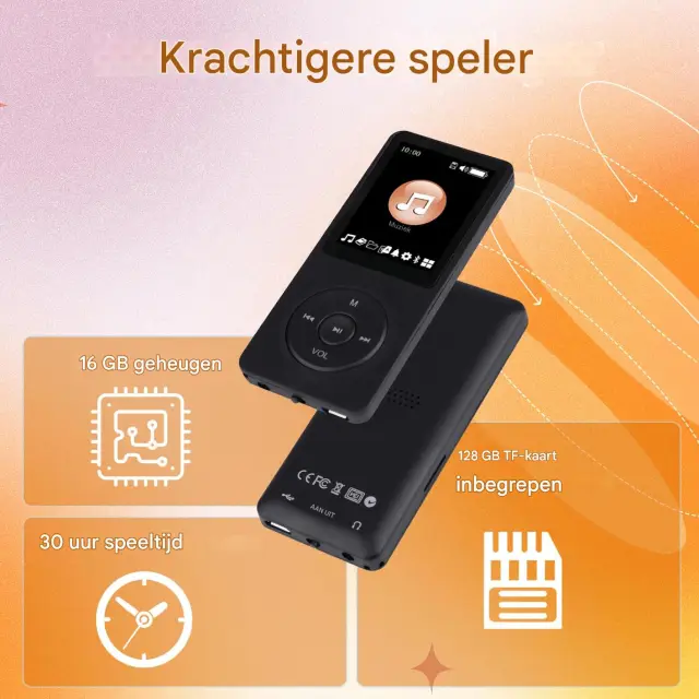 Kompaktna in prenosna zasnova – Lahek predvajalnik MP3/MP4 z 1,8-palčnim barvnim zaslonom in do 7 urami predvajanja, idealen za na poti, šport in potovanja.