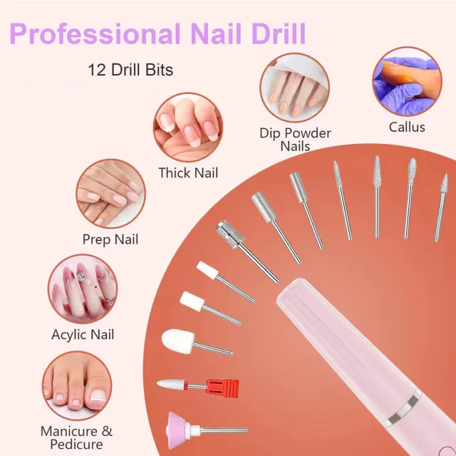 Prenosni lakirnik za nohte, lakirnik za nohte z dolgo življenjsko dobo baterije, profesionalni lakirnik za nohte, polnilen- roza