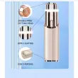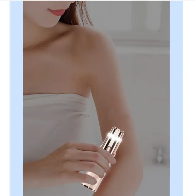 Prenosno in diskretno: Odstranjevalec dlak je zasnovan z mislijo na prenosljivost. Zaradi kompaktne velikosti šminke ga je enostavno prenašati v torbici ali potovalni torbi, kar omogoča hitre popravke kadarkoli in kjer koli. Elegantna in diskretna oblika zagotavlja, da ga lahko samozavestno uporabljate v javnosti, ne da bi pritegnili pozornost. Ostanite urejeni na poti s to priročno in elegantno rešitvijo za odstranjevanje dlak.
