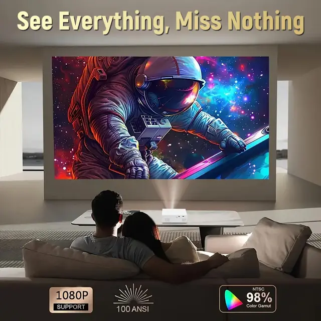 Podpora za 1080P dekodiranje: Kljub svoji majhnosti ta projektor podpira dekodiranje 1080P, kar zagotavlja jasno in ostro sliko. Uživajte v visokokakovostnih filmih in videoposnetkih z živahnimi barvami in bogatimi podrobnostmi. Idealen je za domači kino, igre in predstavitve.