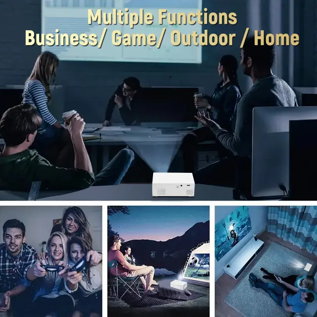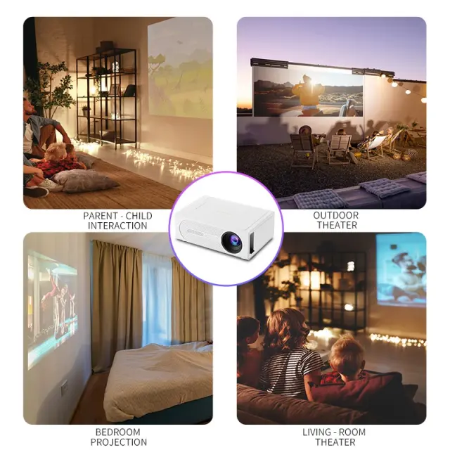 Kompakten in prenosen dizajn: Zaradi svoje majhnosti in lahke zasnove je ta mini projektor izjemno prenosen. Enostavno ga spravite v torbo ali nahrbtnik, kar je idealno za potovanja, kampiranje ali poslovne predstavitve na poti. Uživajte v filmih, videoposnetkih in predstavitvah kjerkoli in kadarkoli.