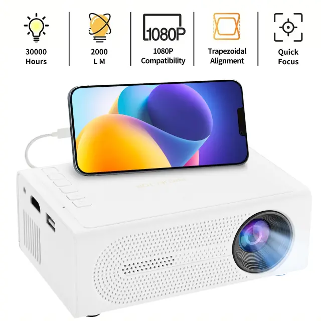 Prenosni mini projektor: 1080P podpora, HDMI/USB priključki, idealen za potovanja White