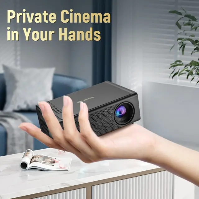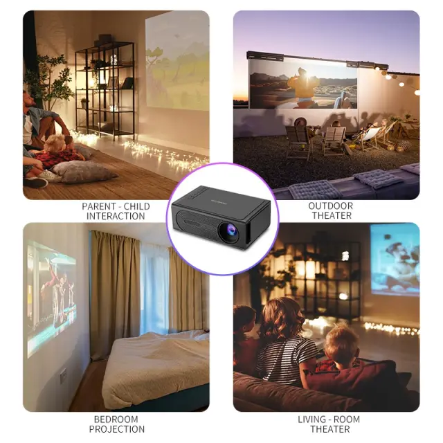 Kompakten in prenosen dizajn: Zaradi svoje majhnosti in lahke zasnove je ta mini projektor izjemno prenosen. Enostavno ga spravite v torbo ali nahrbtnik, kar je idealno za potovanja, kampiranje ali poslovne predstavitve na poti. Uživajte v filmih, videoposnetkih in predstavitvah kjerkoli in kadarkoli.
