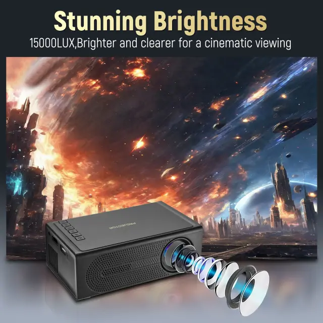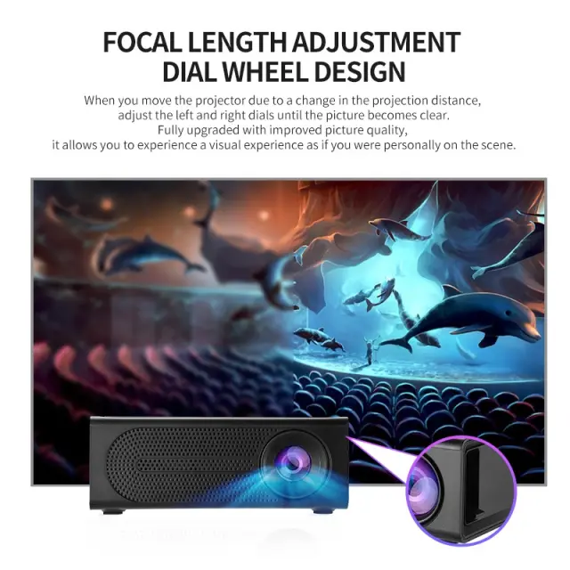 Vsestranska povezljivost: Projektor ponuja široko paleto možnosti povezovanja, vključno z HDMI, USB, TF kartico in AV priključkom. To vam omogoča enostavno povezavo z različnimi napravami, kot so prenosni računalniki, pametni telefoni, igralne konzole in USB ključki. Uživajte v prilagodljivosti in priročnosti pri predvajanju vaše najljubše vsebine.