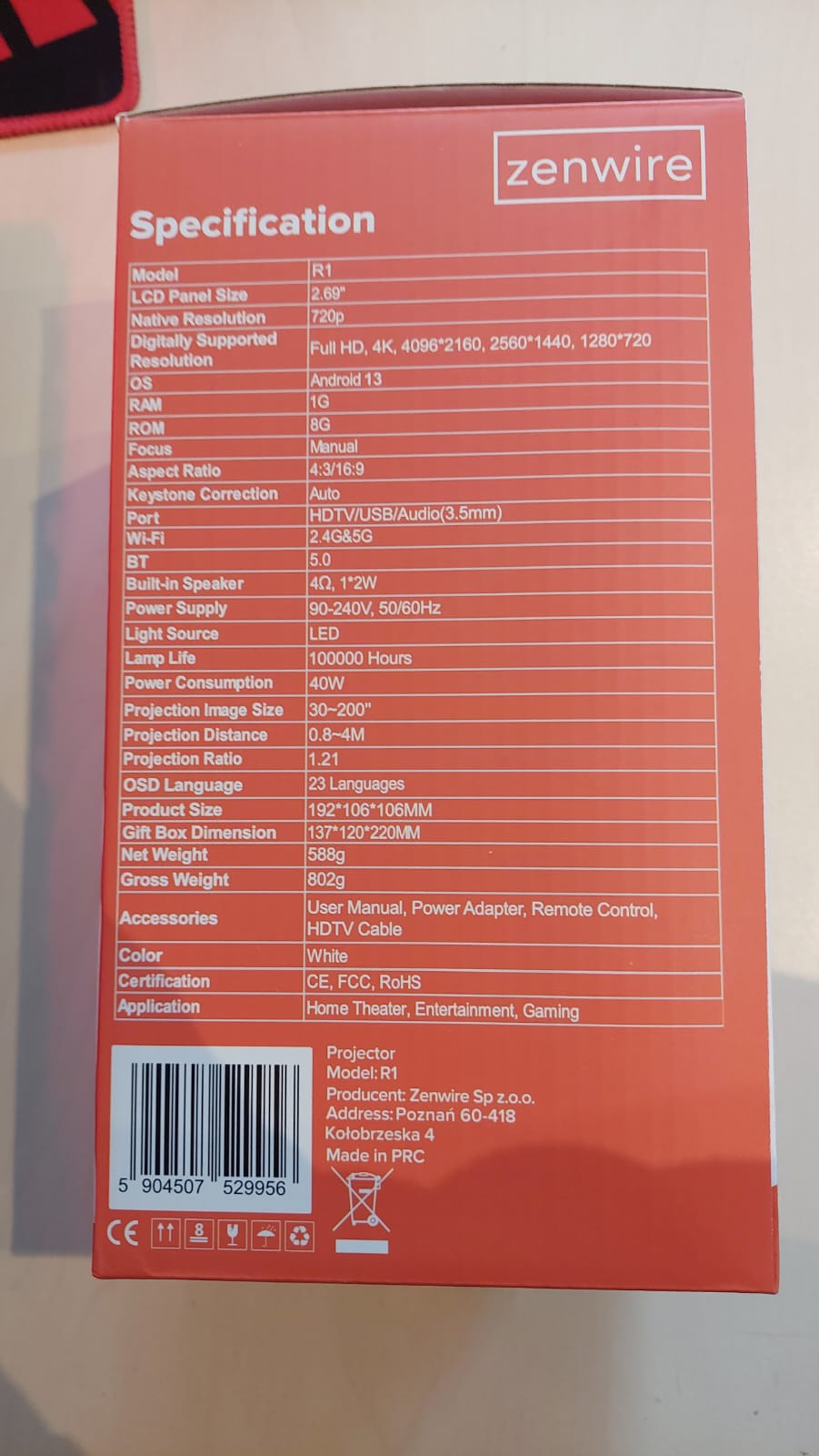 Projektor Zenwire R1 je izjemno elegantna in kompaktna naprava. Prilega se vam v dlan, lahko ga pospravite v torbo in ga nosite s seboj, kamor koli želite.