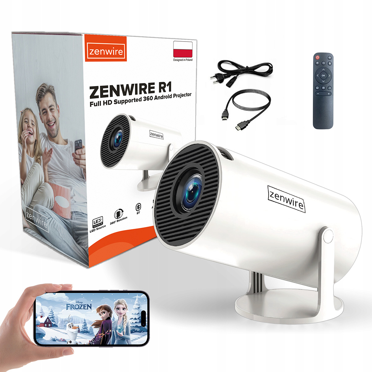 ➡️ Projektor Zenwire R1 lahko preprosto povežete s pametnim telefonom z operacijskim sistemom Android in Applovim telefonom iPhone IOS ter si z njim brezžično delite zaslon s telefona.