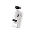 Za napajanje mikroskopa vstavite 2 bateriji AAA (bateriji nista vključeni v paketu). Z vrtenjem obroča na objektivu lahko predmete povečate od 60- do 120-krat. Pri uporabi mikroskopa s telefonom: Ko je objektiv v bližini predmeta, aktivirajte lučko LED. Uporabite kolesce za povečavo, da izberete želeni faktor povečave in ga prilagodite za jasno sliko. Nato posnemite fotografije povečanih predmetov.