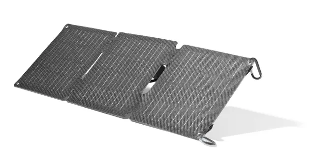 • Pametna postavitev: Na zadnji strani se nahaja nastavljivo stojalo, ki omogoča, da panele postavite pod optimalnim kotom glede na sonce. Priloženi karabini pa omogočajo enostavno pritrditev na nahrbtnik ali šotor.