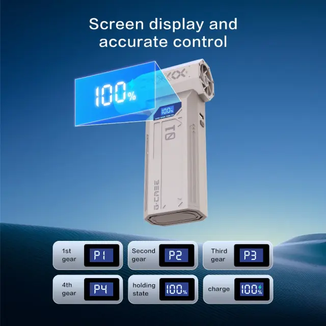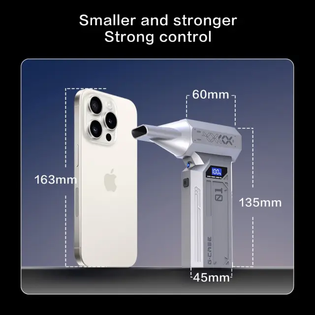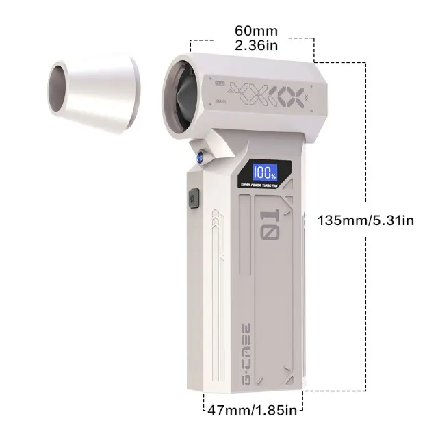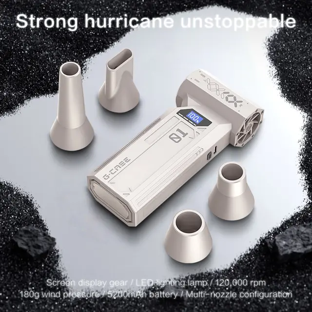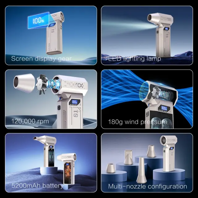 Močno čiščenje: Doživite neprimerljivo moč čiščenja z našim prenosnim ročnim zračnim puhalnikom. Opremljen z visoko zmogljivim 29 mm motorjem in osupljivimi 110000 RPM, ta turbo ventilator zagotavlja zračni tlak 180G, ki brez težav odstrani prah, ostanke in umazanijo tudi iz najtežje dostopnih mest. Idealen za čiščenje elektronike, tipkovnic, notranjosti avtomobilov in še več, kar zagotavlja brezhibno okolje vsakič. Nastavitve več hitrosti vam omogočajo, da prilagodite intenzivnost glede na nalogo, kar zagotavlja optimalno čiščenje za različne površine in aplikacije. Ta zračni puhalnik je nepogrešljiv za vse, ki iščejo močno in učinkovito rešitev za čiščenje.