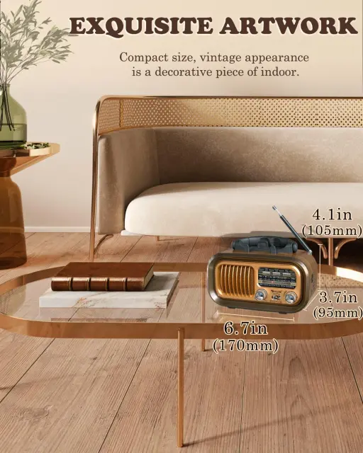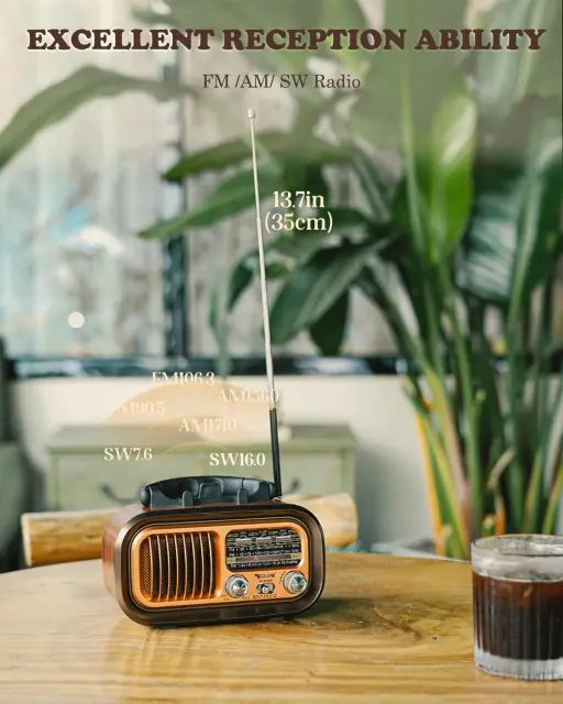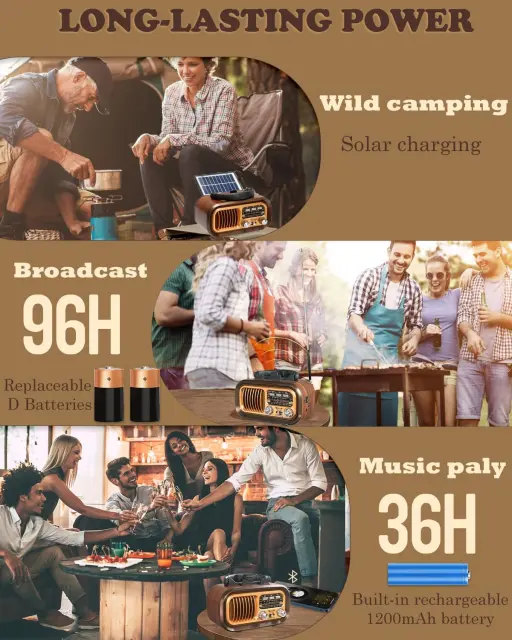 Prenosni solarni radio, Bluetooth Retro, podpora FM, TF, baterija in vtič, rjave barve