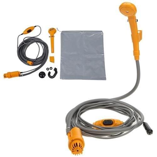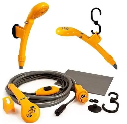 Turistična prha bo delovala povsod, kjer nimate dostopa do kopalnice – v kampu, na parceli, pod šotori, na morju, na primer za izpiranje slane vode po kopeli – vse kar potrebujete je dostop do avtomobilskega vtikača.