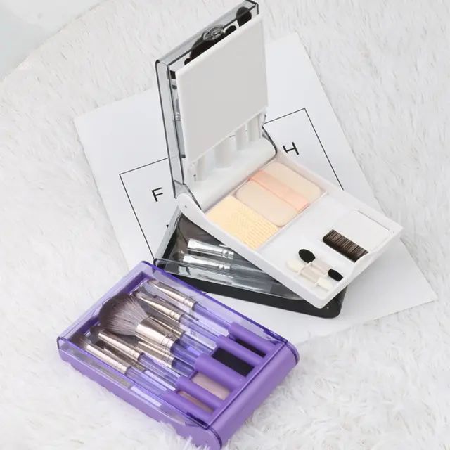 Prenosni Večnamenski Set Čopičev za Ličenje - Bela Kozmetična Škatla