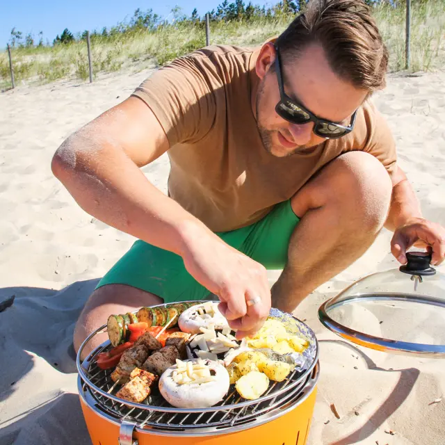 Prenosni žar je pakiran v lični torbi za enostavno prenašanje, zato ga lahko s sabo vzamete na kampiranje, piknik, ladjo, plažo ali pa ga postavite na teraso oz. balkon.