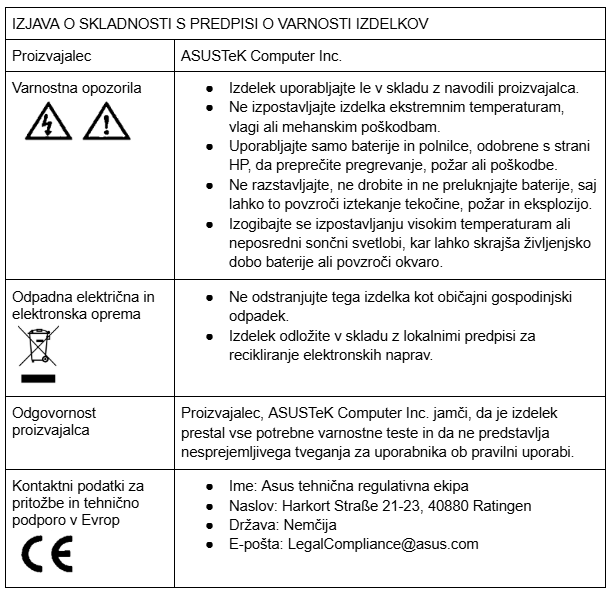 Slike o varnosti izdelka vsebujejo opozorila na embalaži izdelka in lahko vključujejo ključne varnostne informacije, povezane z določenim izdelkom.