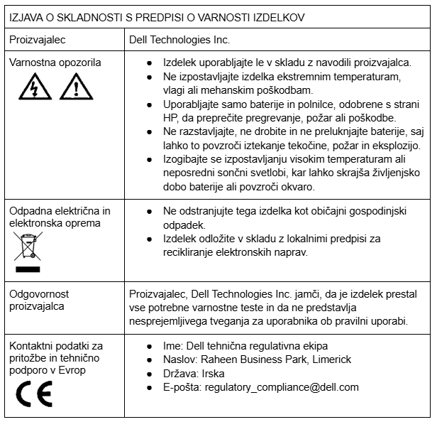 ### Opis izdelka