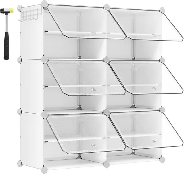 Prepletena omara za čevlje, modularni organizator za shranjevanje s 6 prostori, 30 x 40 x 30 cm za vsak prostor, z vrati, jeklen okvir, plastične ploš