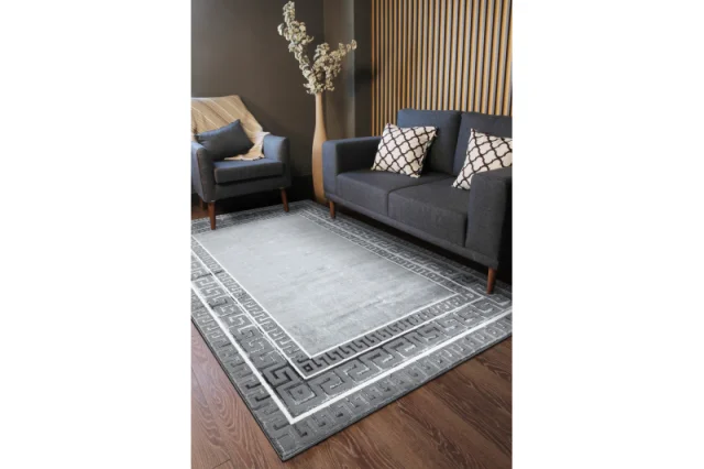 Preproga ALLURE 1960 Grški ključ, okvir - strukturna, elegantna, glamur siva 80x150 cm