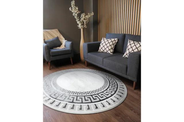 Preproga ALLURE 1960 krog, Grški ključ, okvir - strukturna, elegantna, glamur belo / siva cercle 150 cm