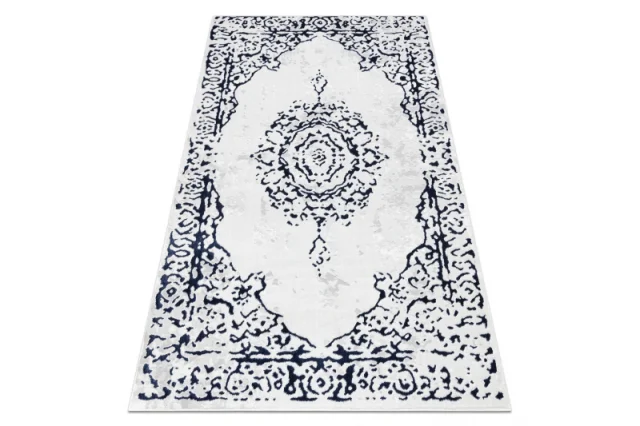 Preproga ALLURE 1961 Ornament, okvir - strukturna, elegantna, glamur belo / plava 160x220 cm