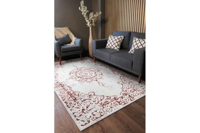 Preproga ALLURE 1961 Ornament, okvir - strukturna, elegantna, glamur belo / roza 120x170 cm